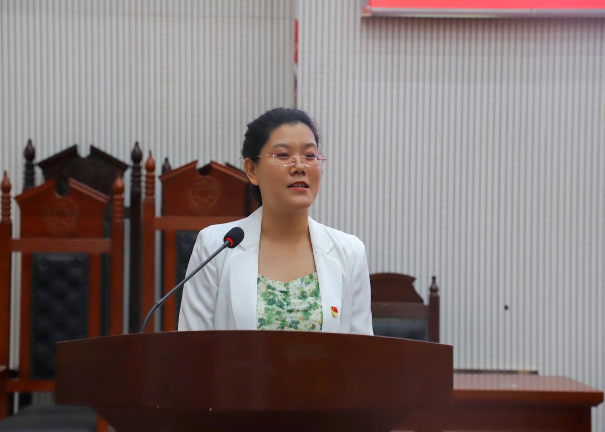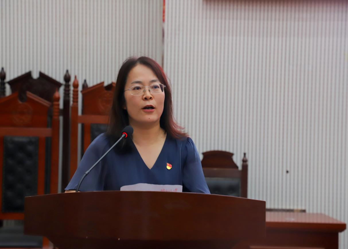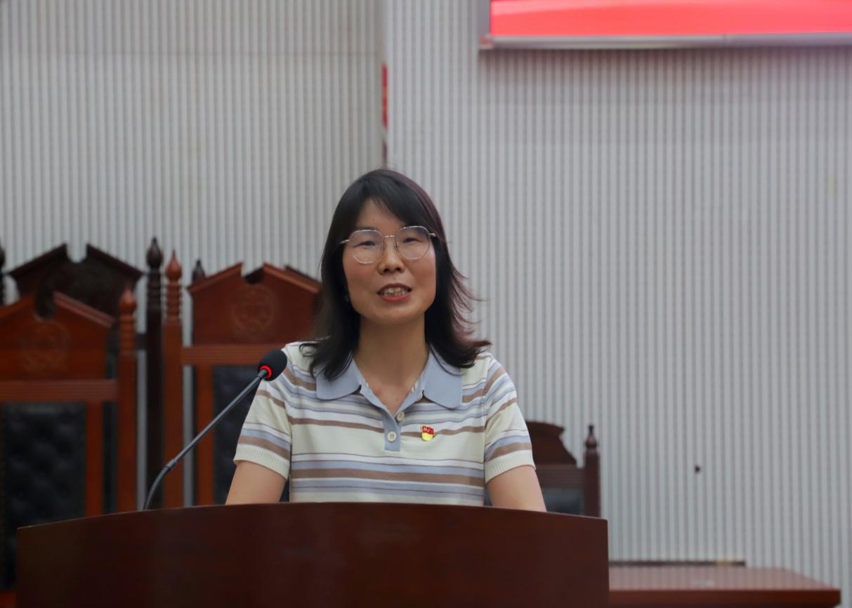 党龄二十年党员代表法律系教工党支部党员赵菊敏发言,她分享到,20年党龄是信仰之根扎深筑牢的历程,站在20年这个承前启后的节点,更深感责任在肩,未来将继续聚焦中国的法治实践问题,努力作出成果,永葆信仰。