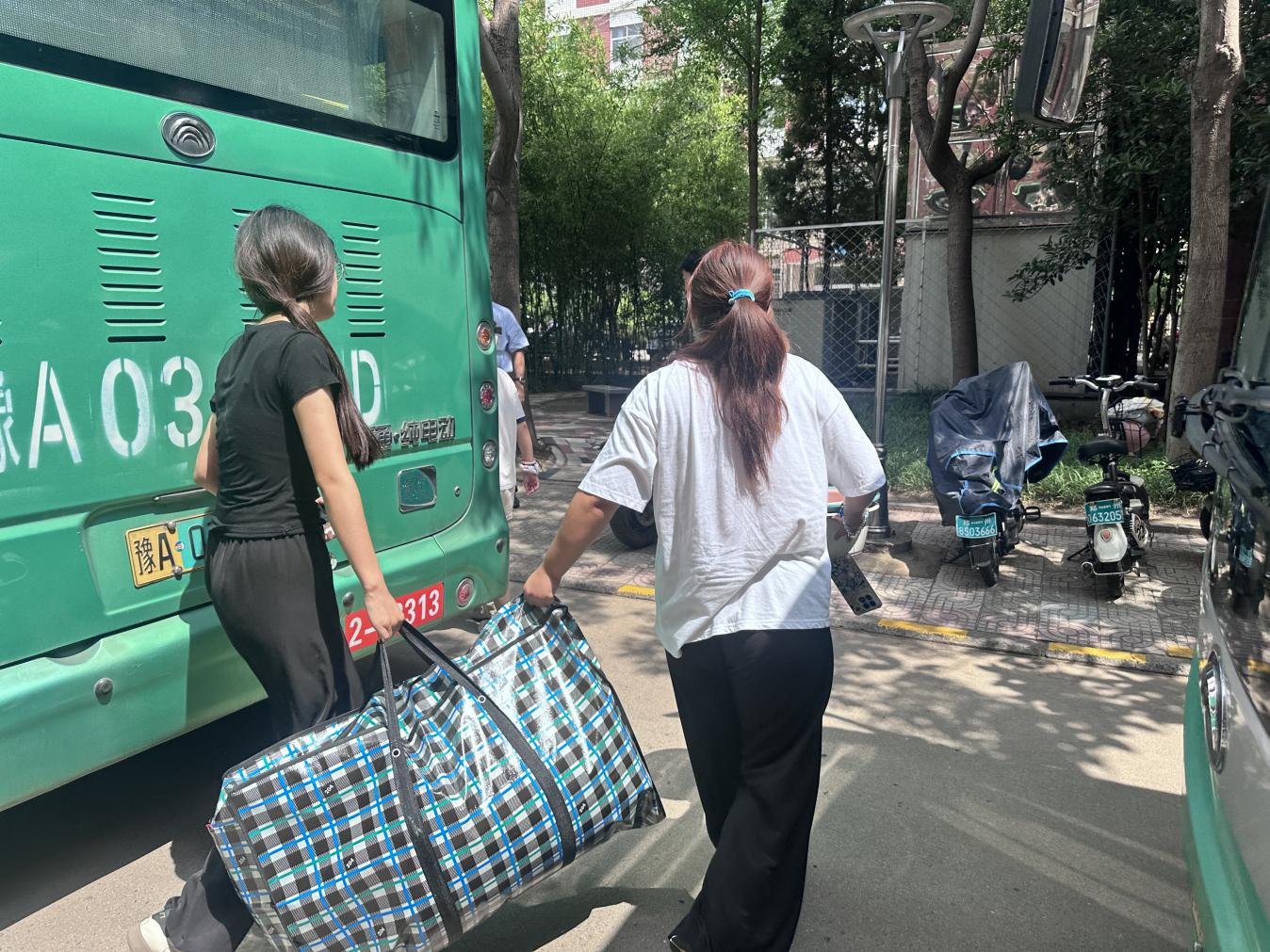 辅导员帮助学生搬运行李