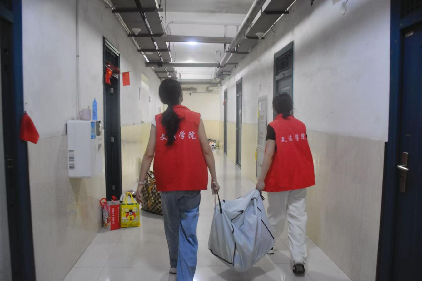 辅导员全程坚守现场,精心指导,与学生党员及志愿者并肩作战,形成了高效有序的分工机制。2024级同学们积极配合,在辅导员和志愿者的指导下,提前完成了行李打包与标记工作,并与志愿者进行了高效对接,确保了搬迁工作顺利进行。志愿者们在宿舍相应区域有条不紊地开展行李搬运、物品看护及现场调度等工作,及时响应学生需求,协助解决实际困难,为同学们提供了贴心、周到的服务。在师生的密切配合与分工协作下,整个搬迁工作高效有序,现场气氛热烈而温馨,充分展现了h漫