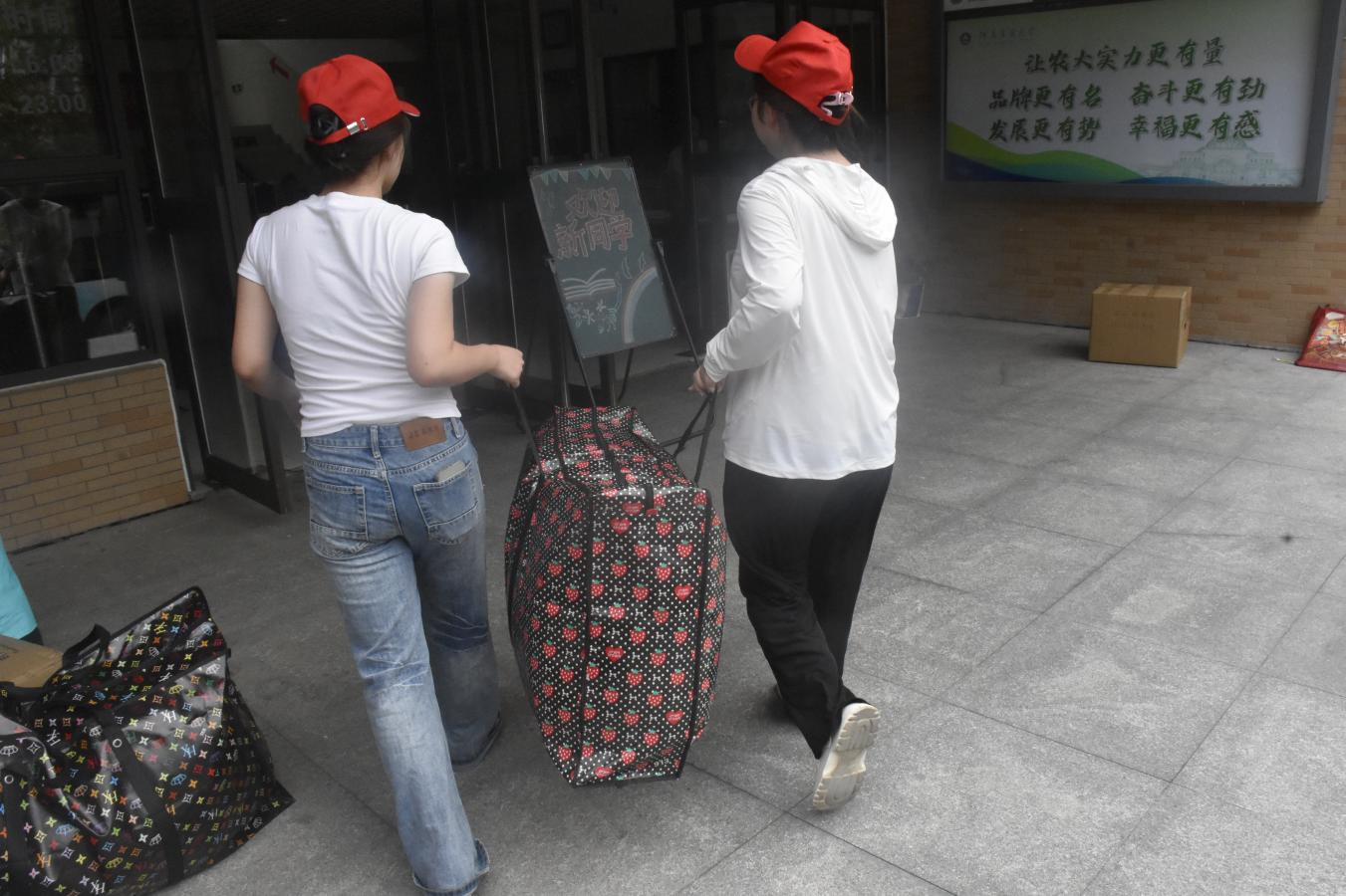 学生志愿者帮助学生搬运行李
