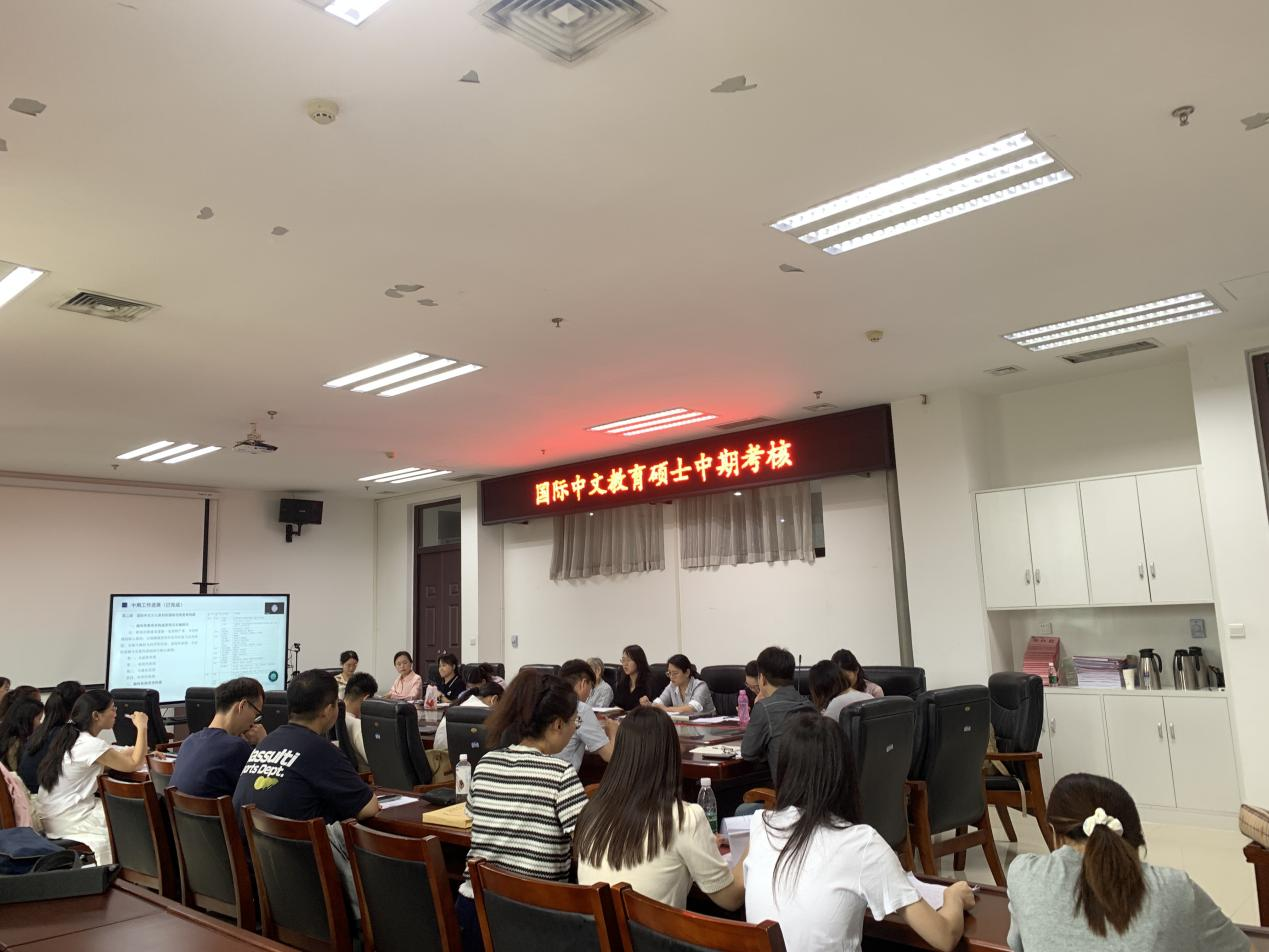 会议室顺利举行。汉语言文学系副主任吴亮担任评审组组长,国际中文教育专业全体导师、2023级全体研究生共同参会。