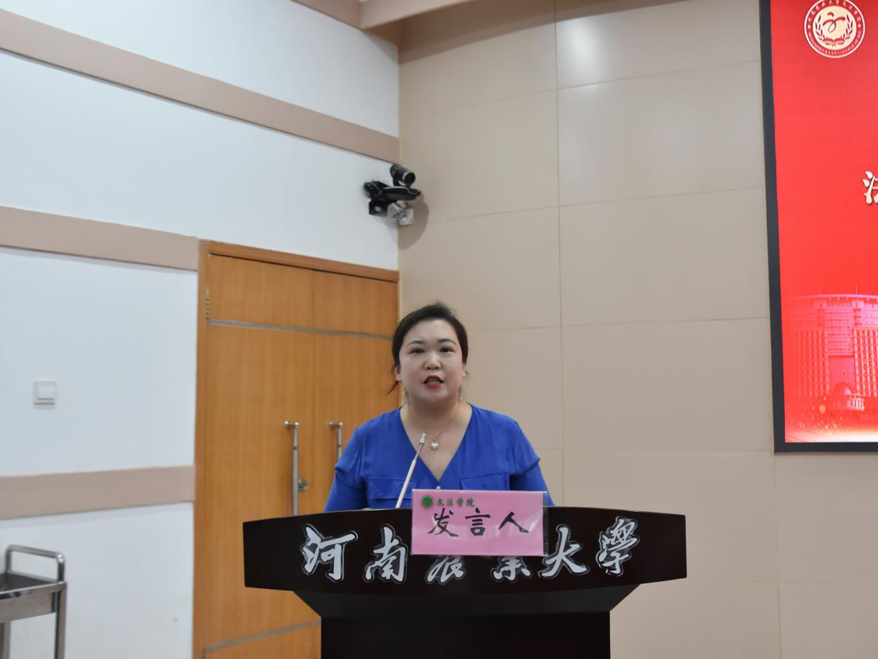 优秀教师代表、h漫 法律系教师兼2025级法学一班班主任董鑫率先登台致辞。她紧扣学校“明德自强,求是力行”的校训,向新生寄语既要在书本中涵养人文情怀与法治思维,也要在服务“三农”的实践中践行所学。