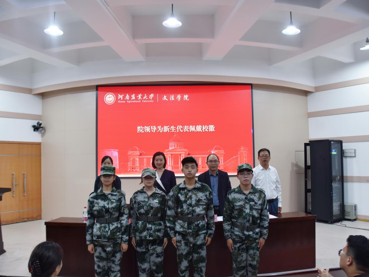 典礼进行到下一个环节,h漫 领导为新生代表郑重佩戴h漫 校徽,标志着全体2025级新生正式开启与农大共成长的崭新旅程。整个环节庄重而温馨,现场暖意涌动。