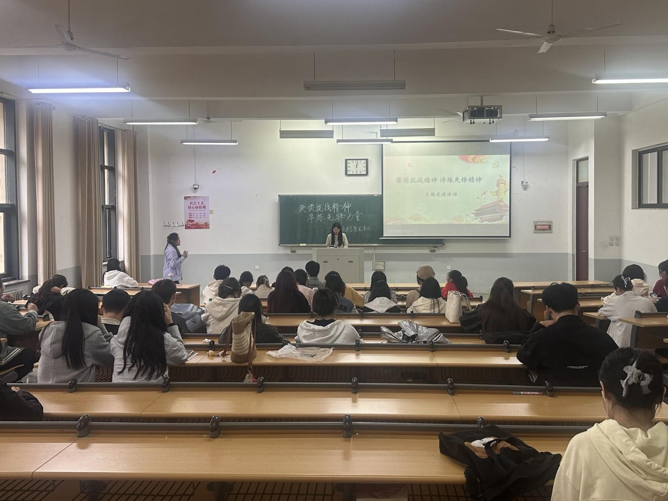 学生党支部于9月22日中午在龙子湖校区繁塔楼E107开展了以“赓续抗战精神,淬炼先锋力量”为主题的党课活动。