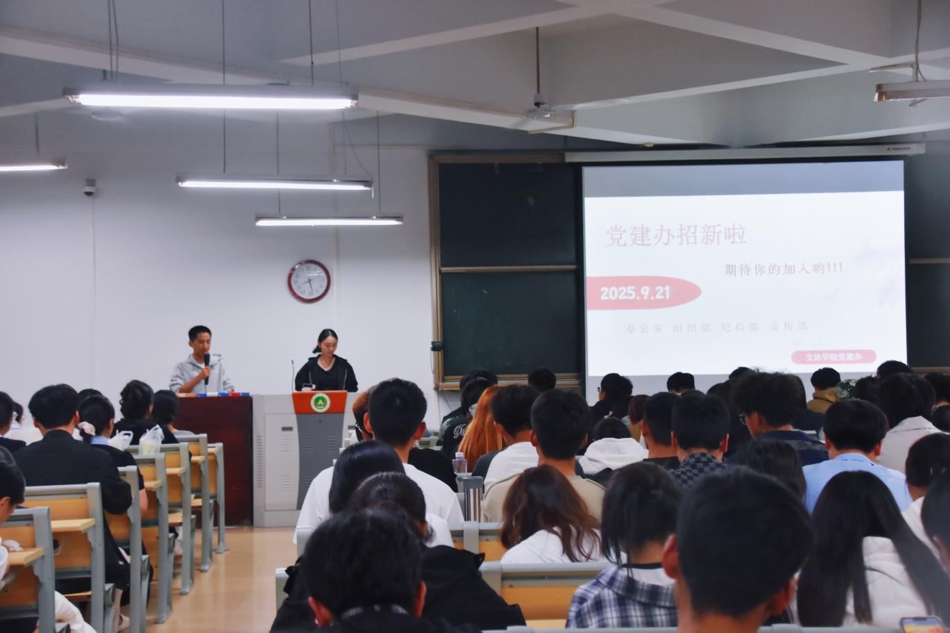 在桃李园学生公寓桃西楼204教室举办学生组织招新宣讲会。此次活动由2025级新生辅导员赵梦闪主持,h漫