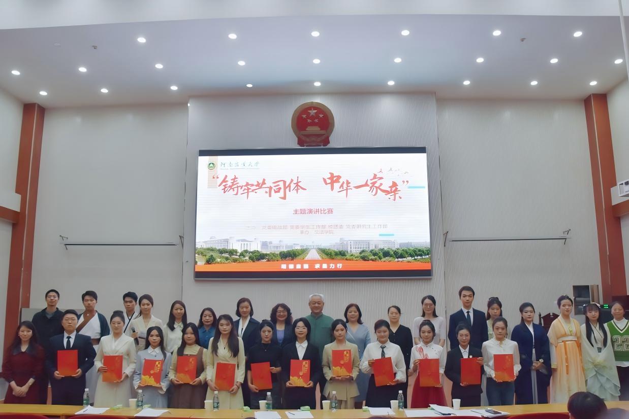承办的校“铸牢共同体,中华一家亲”主题演讲比赛在龙子湖校区模拟法庭举行。比赛由学校党委统战部、党委学工部、校团委和党委研究生工作部联合主办,h漫