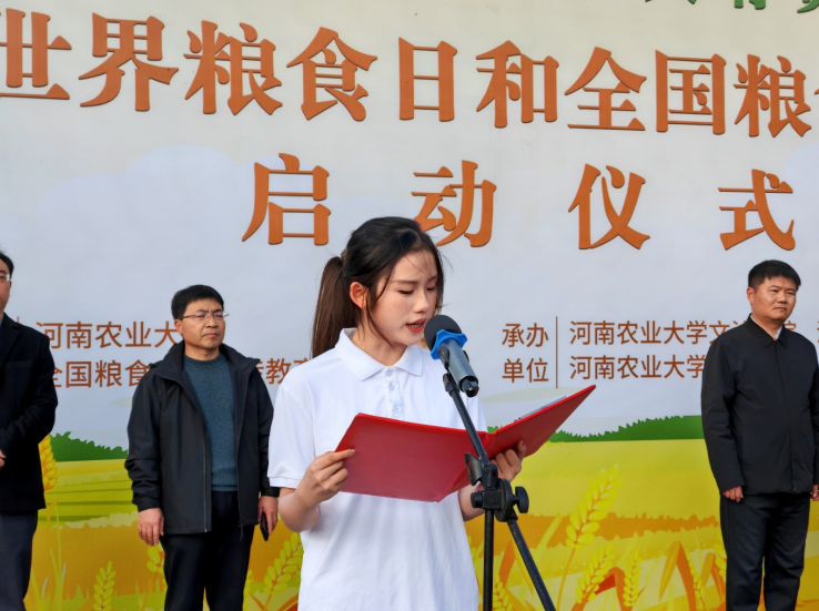 学生代表农学院2024级农学2班孔依宸以“节约传薪火,食安固山河”为题发表演讲,他表示全球粮食安全形势严峻,粮食安全关乎当下和未来。作为新时代青年,应从日常点滴做起,践行节约理念。