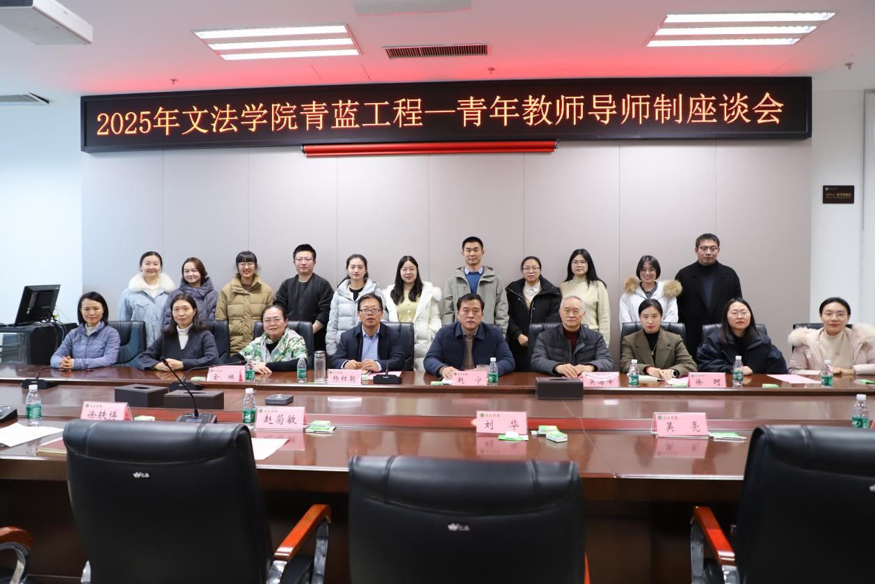 在繁塔楼会议室成功举办2025年“青蓝工程”青年教师导师制座谈会。教务处副处长安世恒、社科处副处长张帅梁、学院关工委委员吴海峰、教学督导金琳、h漫