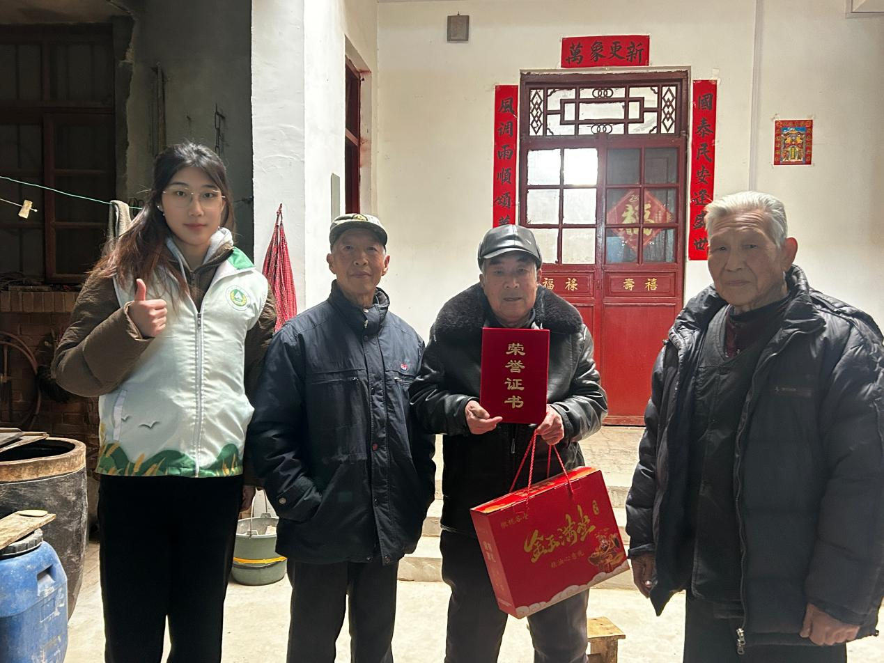 随后,研究生团队对在项目实施过程中积极参与、健康行为表现突出的老年人进行集中表彰,为获评老人颁发荣誉证书与纪念礼品。本次表彰结合老年人参与情况与健康行为表现,精准设立 “健康守护大使”“持续健康监测之星”“健康织网先锋” 三类荣誉奖项。其中,为晨练队中每日坚持参与晨练的老年人授予 “健康守护大使” 称号;为每日按时测量并规范记录血压的老年人授予 “持续健康监测之星” 称号;为项目中积极参与、主动带动邻里参与健康活动的老年带头人颁发 “健康织网先锋” 荣誉证书。此次表彰,旨在充分发挥榜样示范引领作用,进一步激发村内老年人参与健康管理的积极性与主动性。