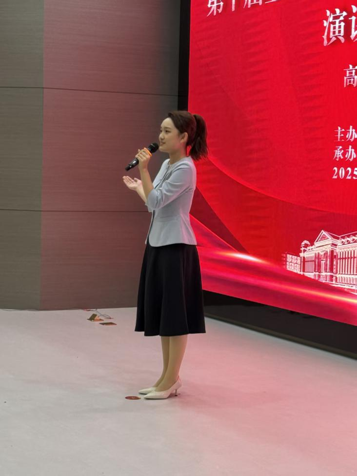 在决赛舞台上,刘雨希以饱满的热情和自信的风采,围绕宪法与青年成长、法治中国建设等核心议题,结合自身作为法学专业学生的思考与体会,发表了主题鲜明、内容充实、情感真挚的演讲。她以清晰的逻辑、流畅的表达和富有感染力的叙述,融合红旗渠精神,深刻阐释了宪法作为根本大法在国家治理和社会生活中的重要作用,通过主题演讲和即兴演讲两部分激烈的角逐,生动展现了当代青年大学生对宪法精神的深刻理解与坚定信仰,赢得了评委和现场观众的一致好评。