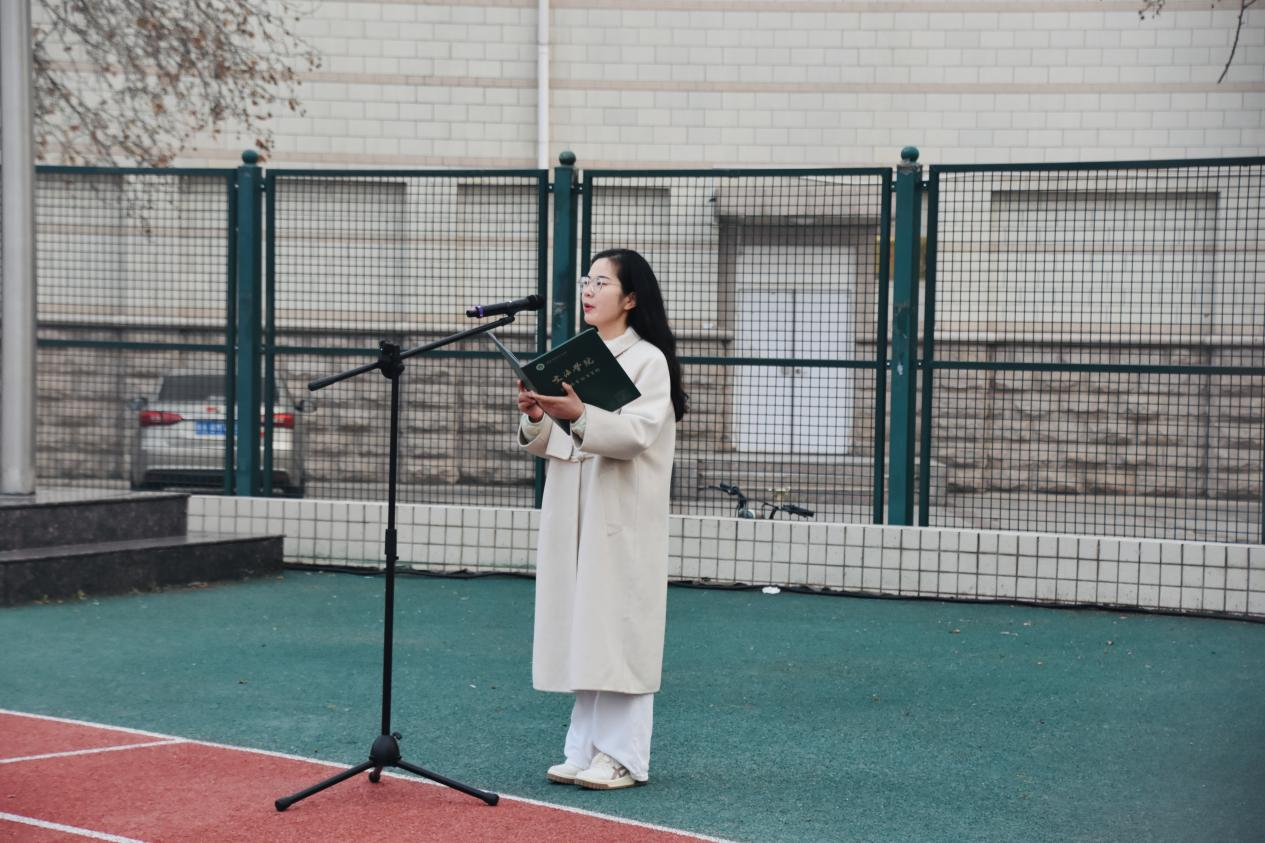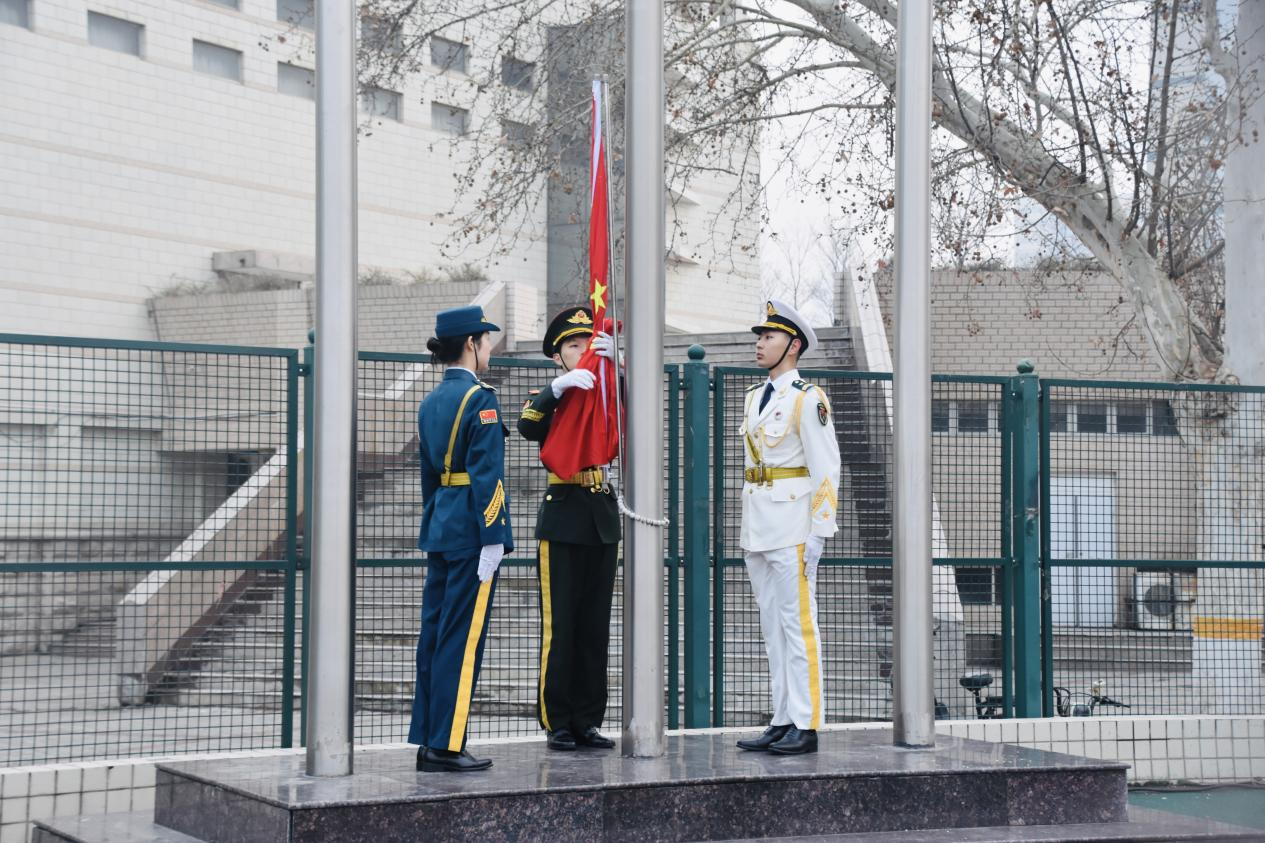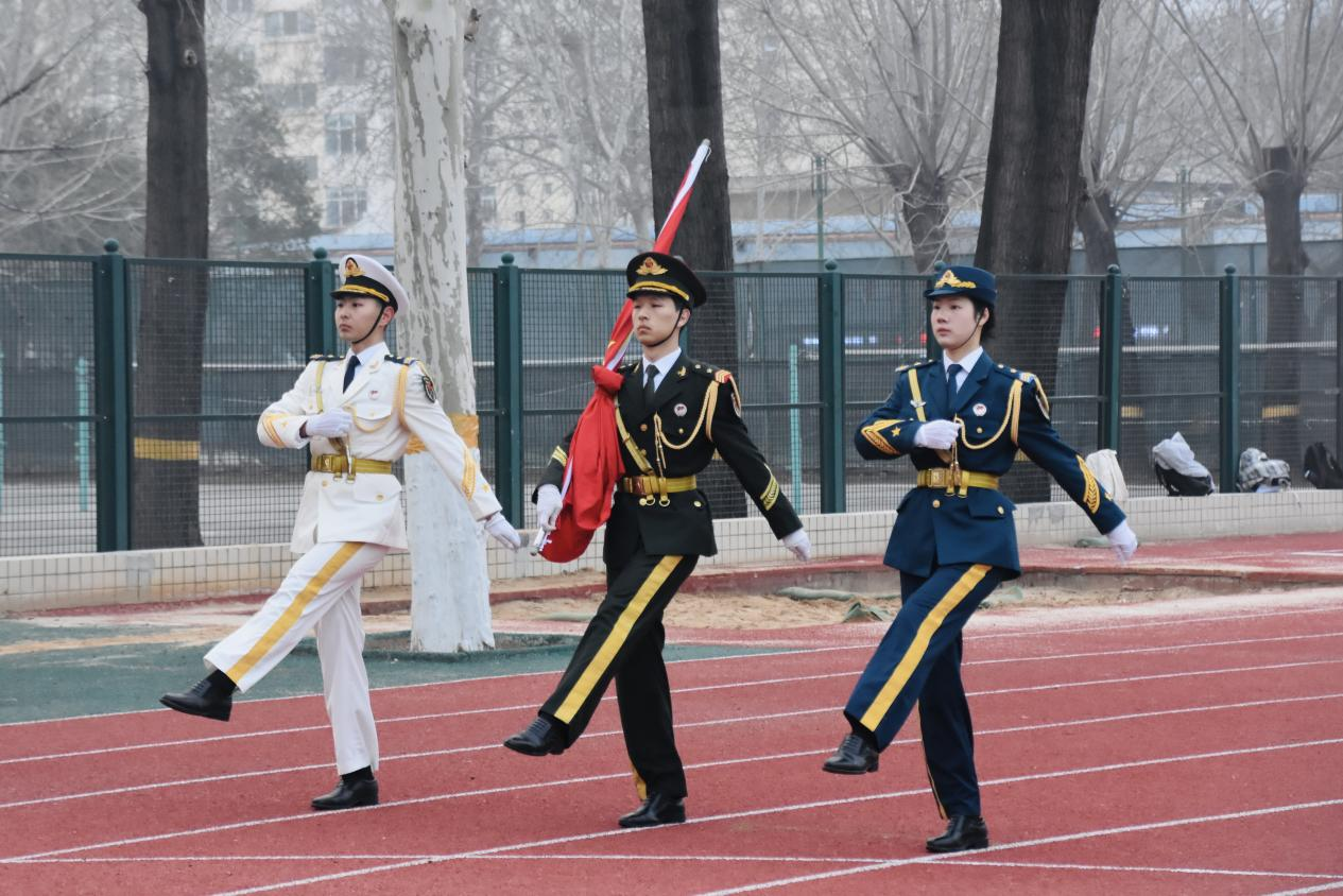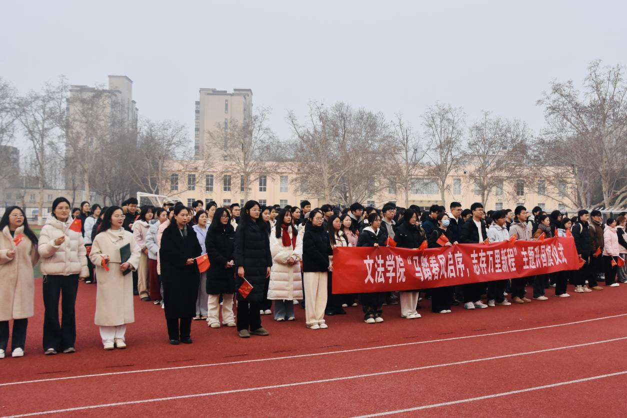 于文化路校区操场举行“马踏春风启序,志存万里新程”主题升国旗仪式,院党委副书记徐珂出席,教师代表及2025级全体本科生参加,院团委书记赵梦闪主持。