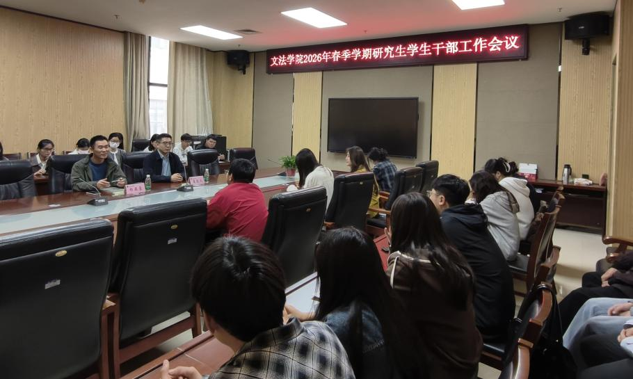 在龙子湖校区教学楼召开2026年春季学期研究生学生干部工作会议,会议由郑亚豪主持。h漫