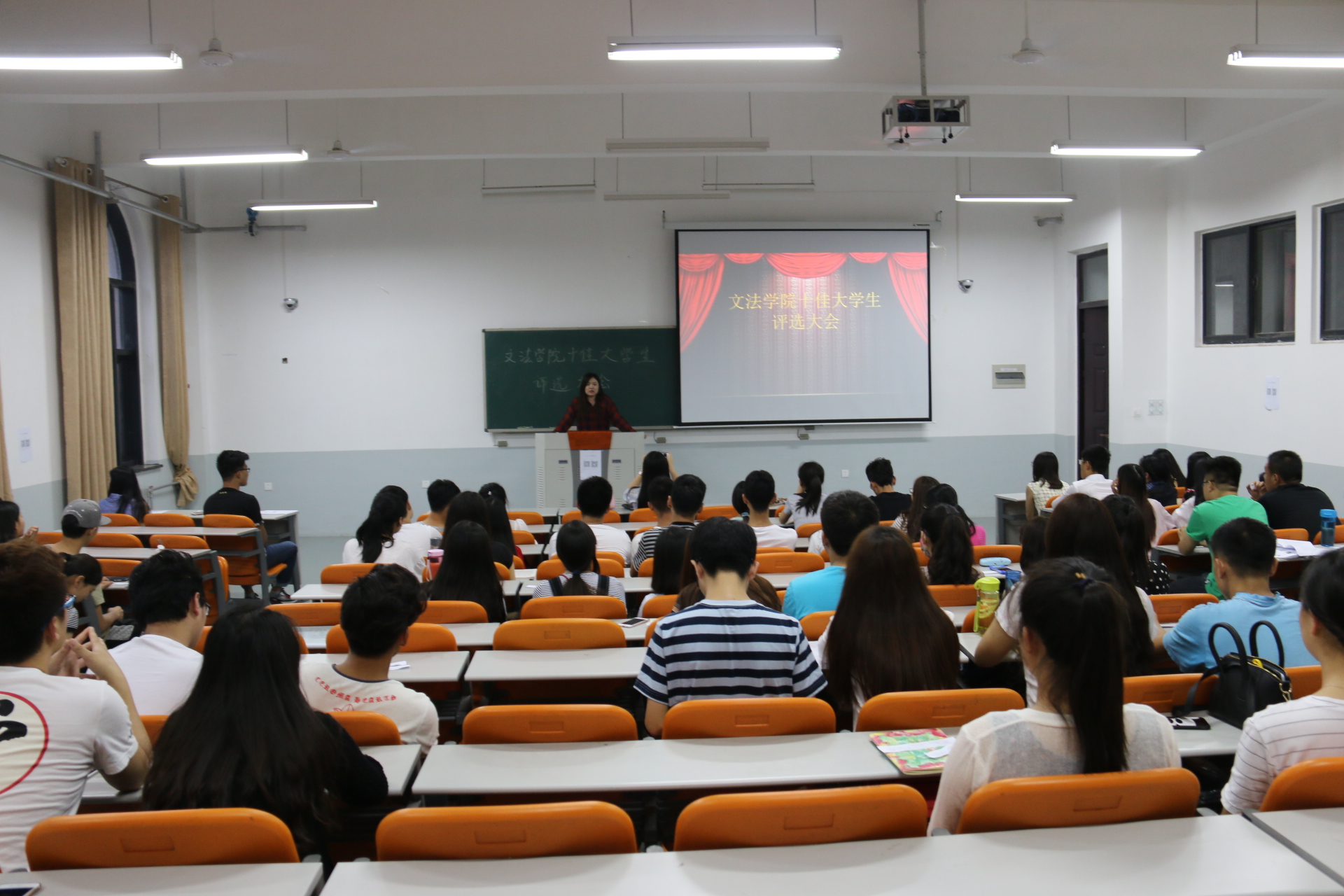 为弘扬社会主义核心价值观,引导和激励学生刻苦学习,成长成才,促进h漫 优良院风、学风建设,h漫 在6月2日晚七点于教学楼C404召开h漫 第十二届十佳大学生评选会成功召开,院团委书记沈倩茹、副书记赵蕊以及各班学生代表参加了此次会议。