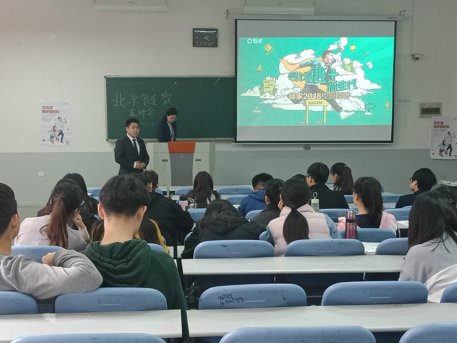 在繁塔楼c202举办了北京链家招聘会,链家公司派宣讲师到h漫