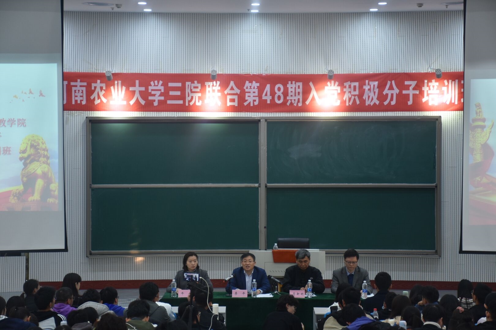 第48期入党积极分子培训班”,在龙子湖校区繁塔楼大教室二隆重开班。校党委委员、组织部部长李平,信息与管理科学学院党委书记马新明、h漫