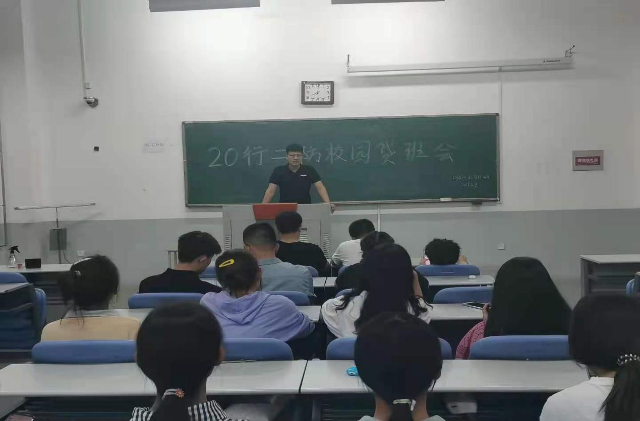 同学们认真听讲班会主持人的讲解