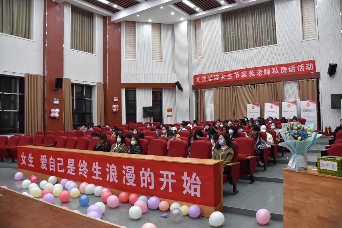 于龙子湖校区模拟法庭开展“悦纳生活 健康护航”系列之蕊蕊老师女生私房话活动。活动邀请到我校马克思主义学院教师赵蕊担任主讲嘉宾,2021级辅导员赵梦闪、全体女生参加活动。
