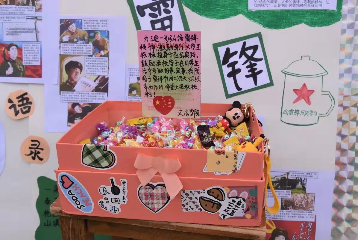 h漫 面向全体学生收集照片,制作照片墙展示好人好事,并于一餐文化广场放置糖果礼盒开展雷锋纪念日活动;举办“学雷锋,树新风”知识竞赛活动,结合时事热点,宣扬雷锋精神的时代内涵;绘制以雷锋纪念日为主题的板报,弘扬雷锋精神;组织学生志愿团进行校园劳动,打扫校园环境。
