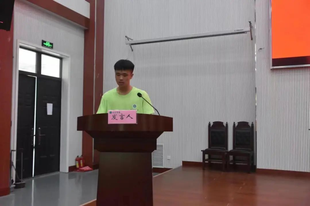 随后,余果为学生代表授社会实践旗帜,22级法学二班学生代表魏帅翔发言。他从宏观到微观深刻阐述了社会实践对大学生的重要性。他表明,作为大学生应当坚持“受教育、长才干、作贡献”的宗旨,积极参与社会实践,深入农村、了解农村、服务农村,用实际行动践行我们的初心和使命。