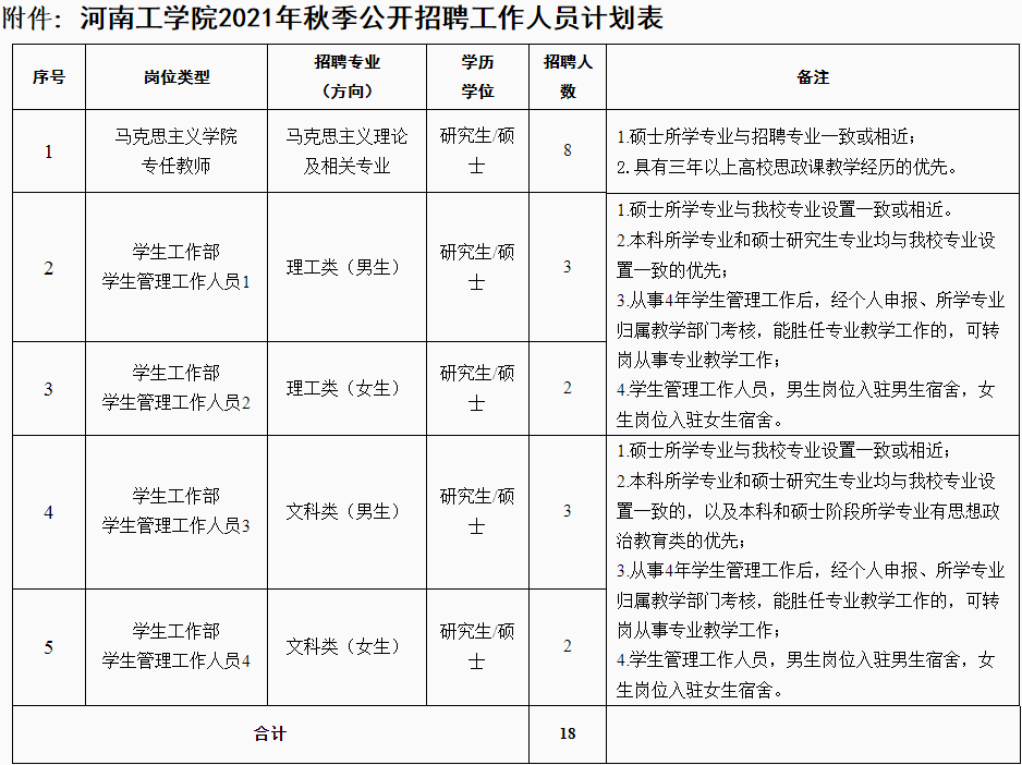 5、岗位所需的学历、专业和其他条件(详见附件《河南省工业学校2021年公开招聘工作人员一览表》)。